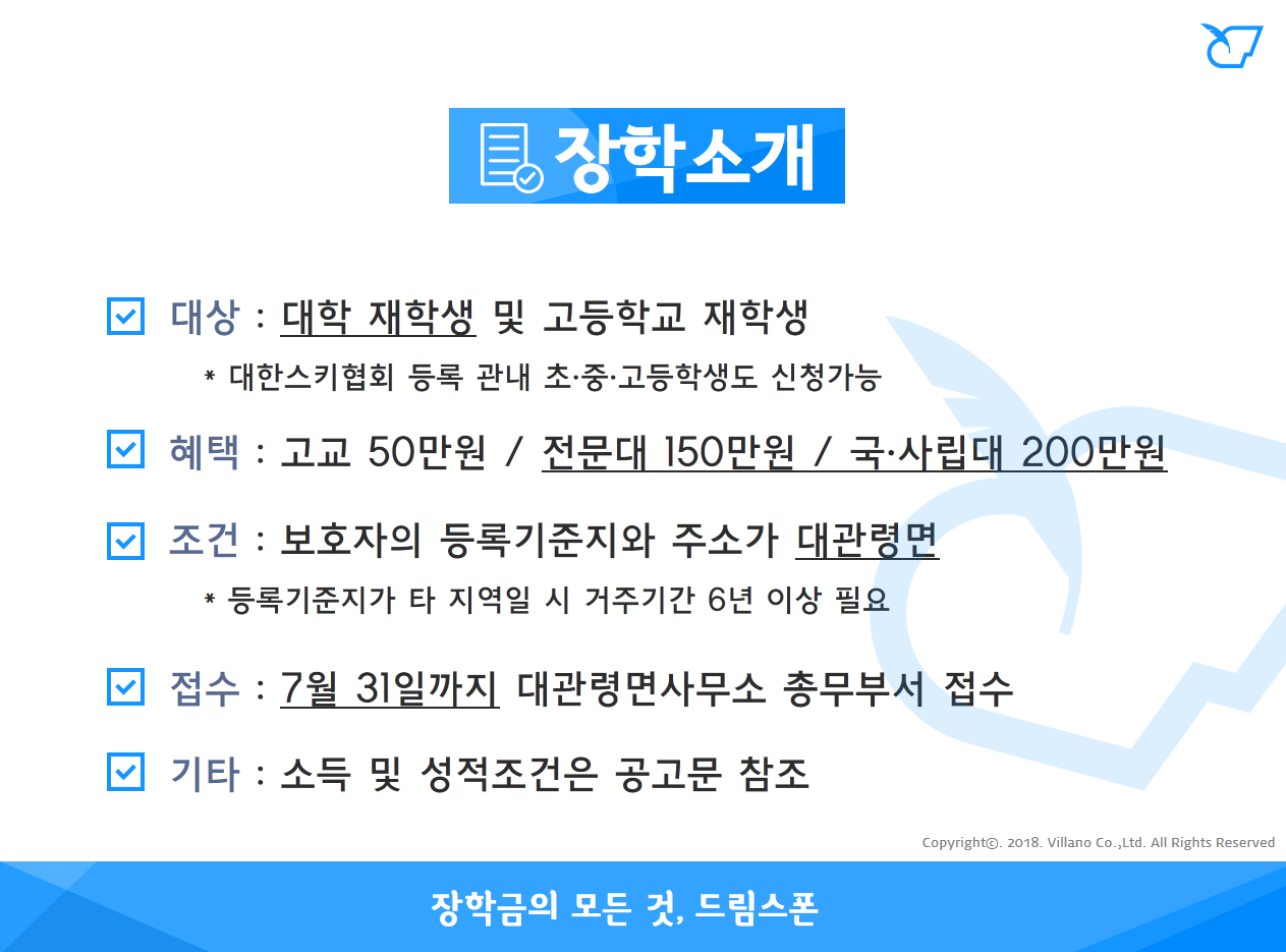 ○ 2018년 07월 18일 현재까지 보호자의 등록기준지(본적) 및 주소가 대관령면 내에 되어 있는 자로써 대학교 재학생과 고등학교 재학생