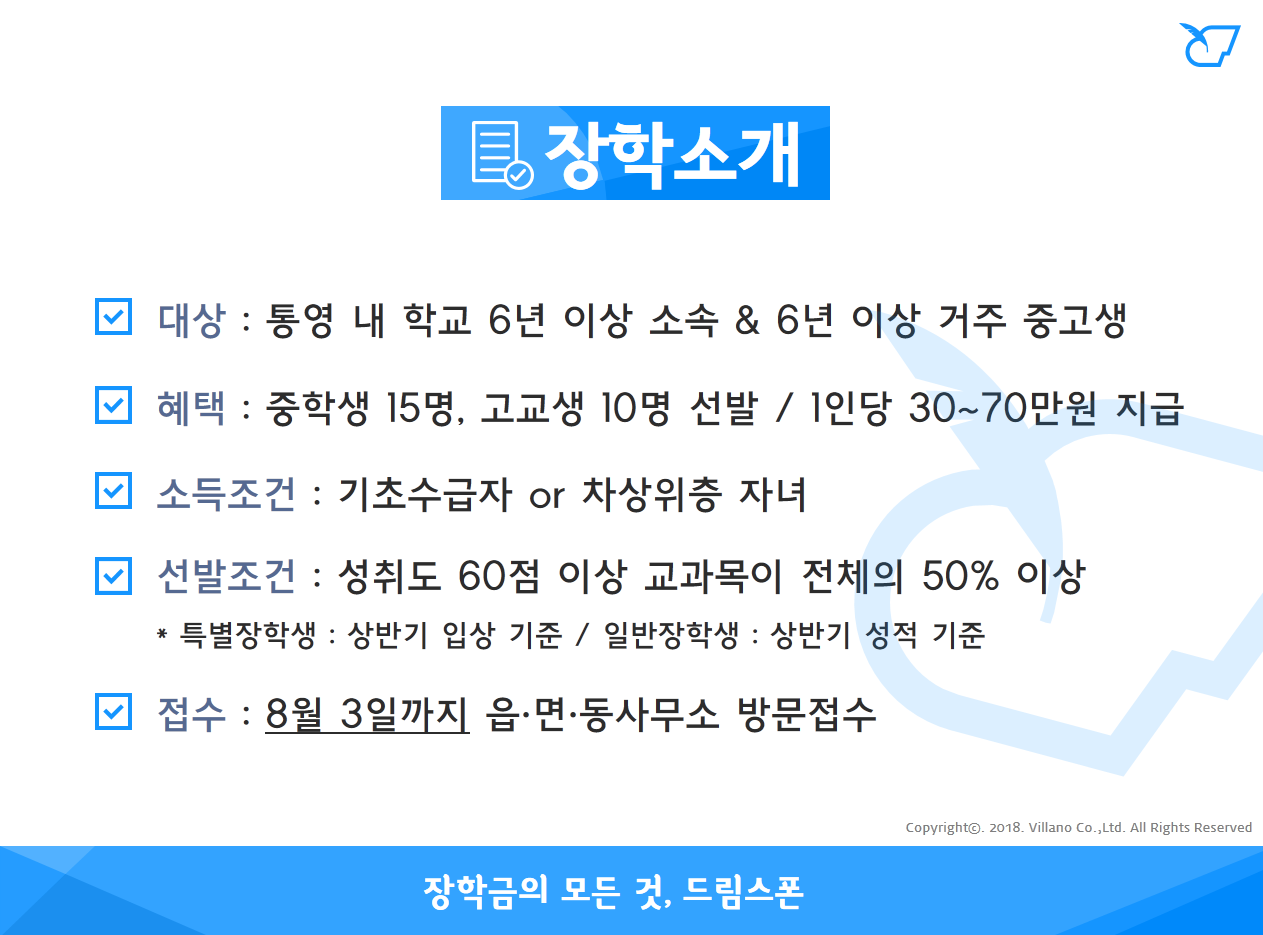 통영시 저소득중고생 장학