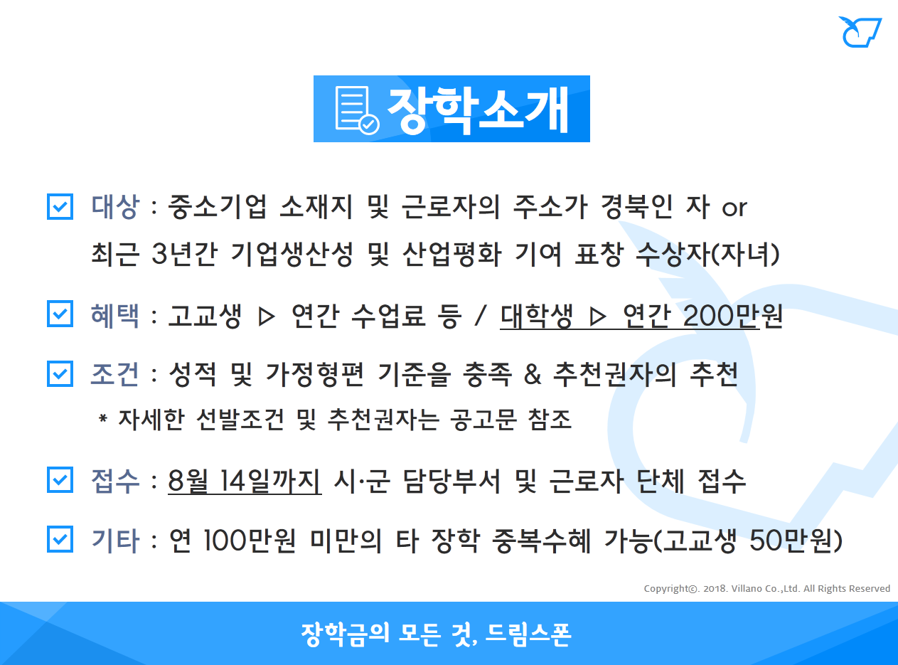 • 근거 : 경상북도 중소기업 근로자자녀 장학기금 설치 및 운용 조례 제9조