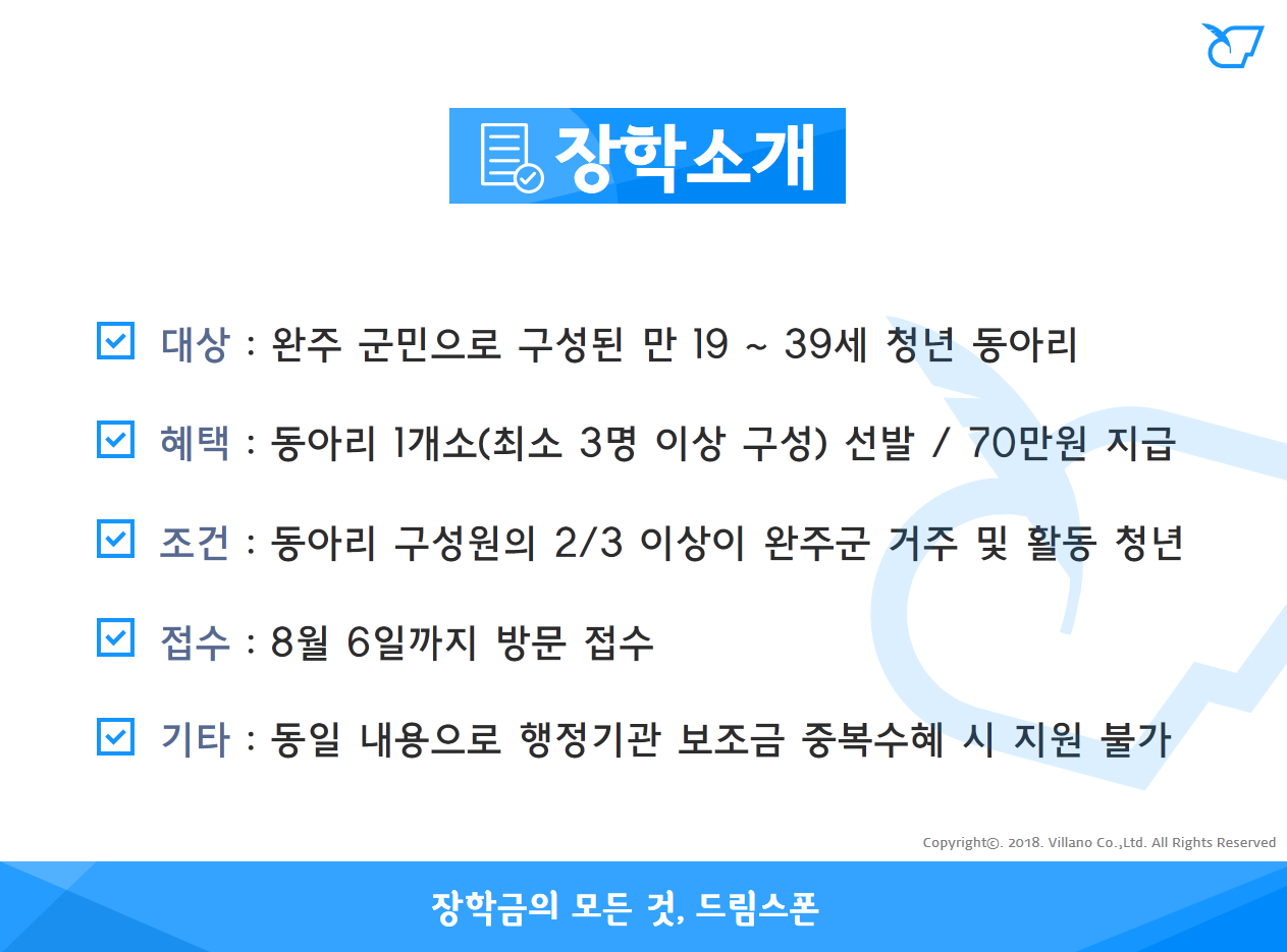 - 접수장소 : 완주군청 공동체활력과 청년정책팀(6층)-완주군 용진읍 지암로 61
