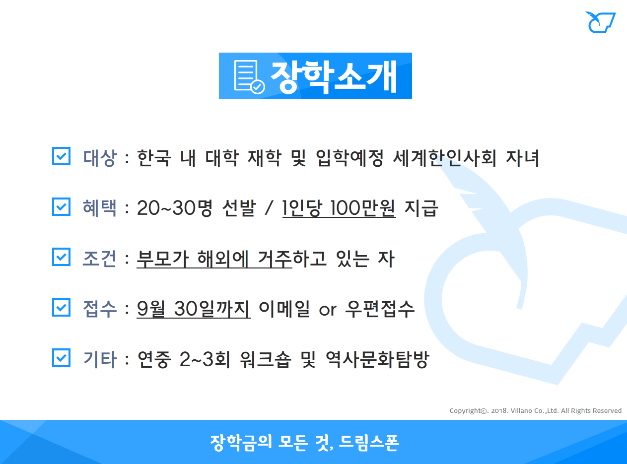 - 장학생 모집 : 2018년 6월 1일 ~ 9월 30일 (금)