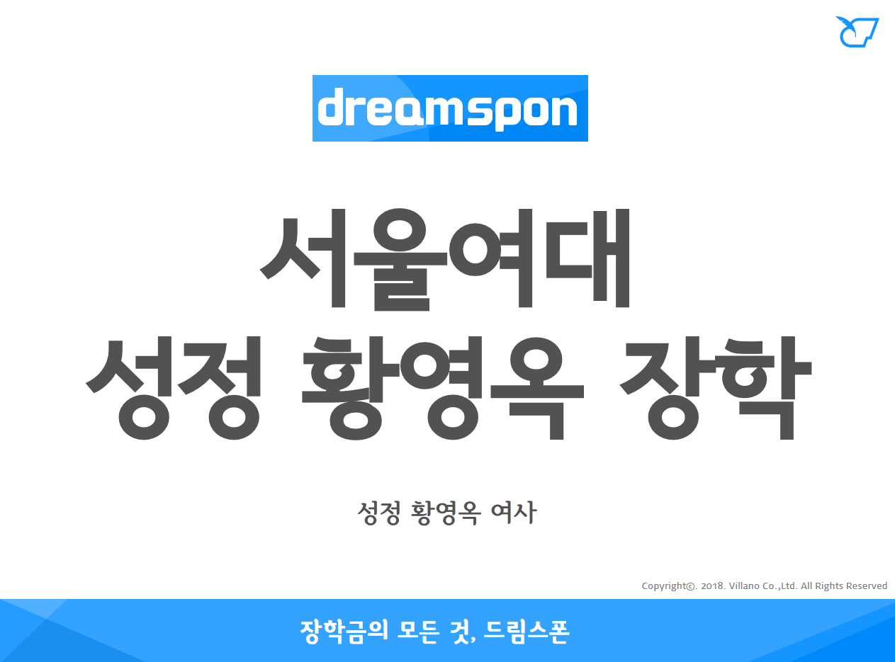 “성정(聖情)황영옥장학금”은 성정(聖情) 황영옥 여사가 서울여자대학교에 기부하여 지급되는 교외장학금으로 기부자의 뜻에 따라 봉사정신이 투철한 기독교인으로서 가계가 곤란하나 성적이 우수하고 비전이 뚜렷한 학생을 선발하고자 합니다.