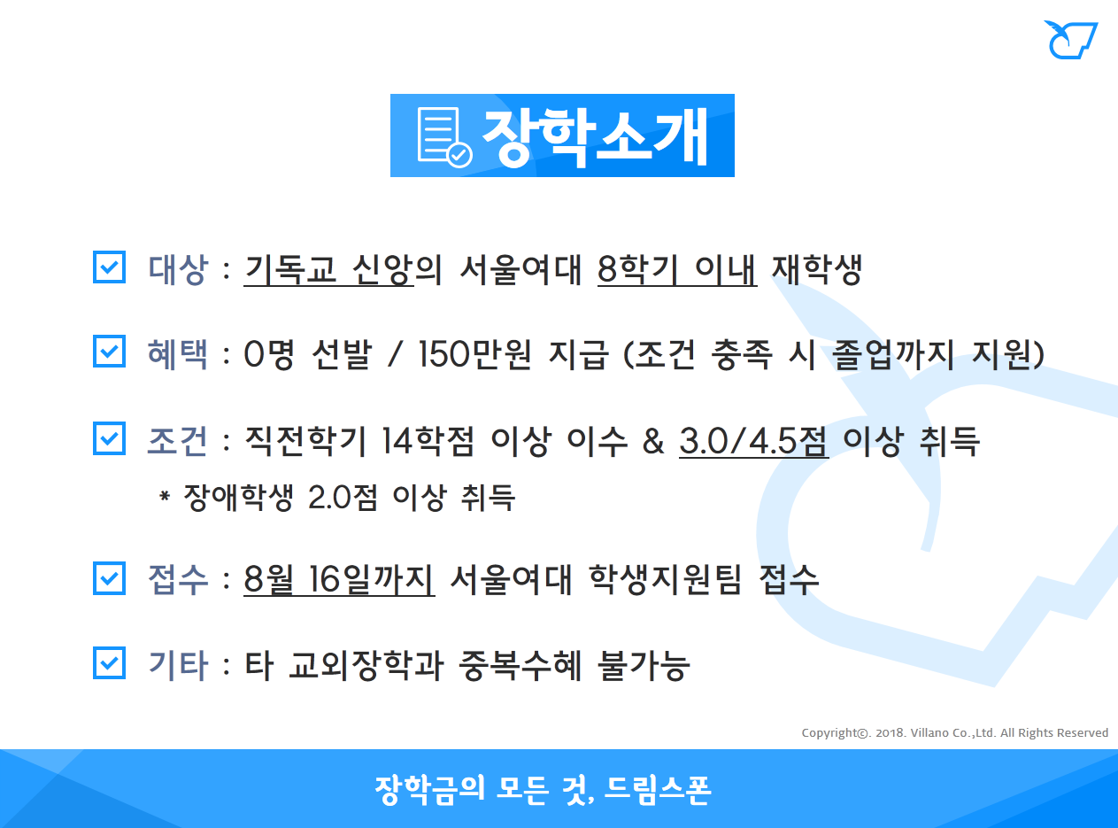 - 기독교인으로서 가계가 곤란하나 성적이 우수하고 비전이 뚜렷한 학생