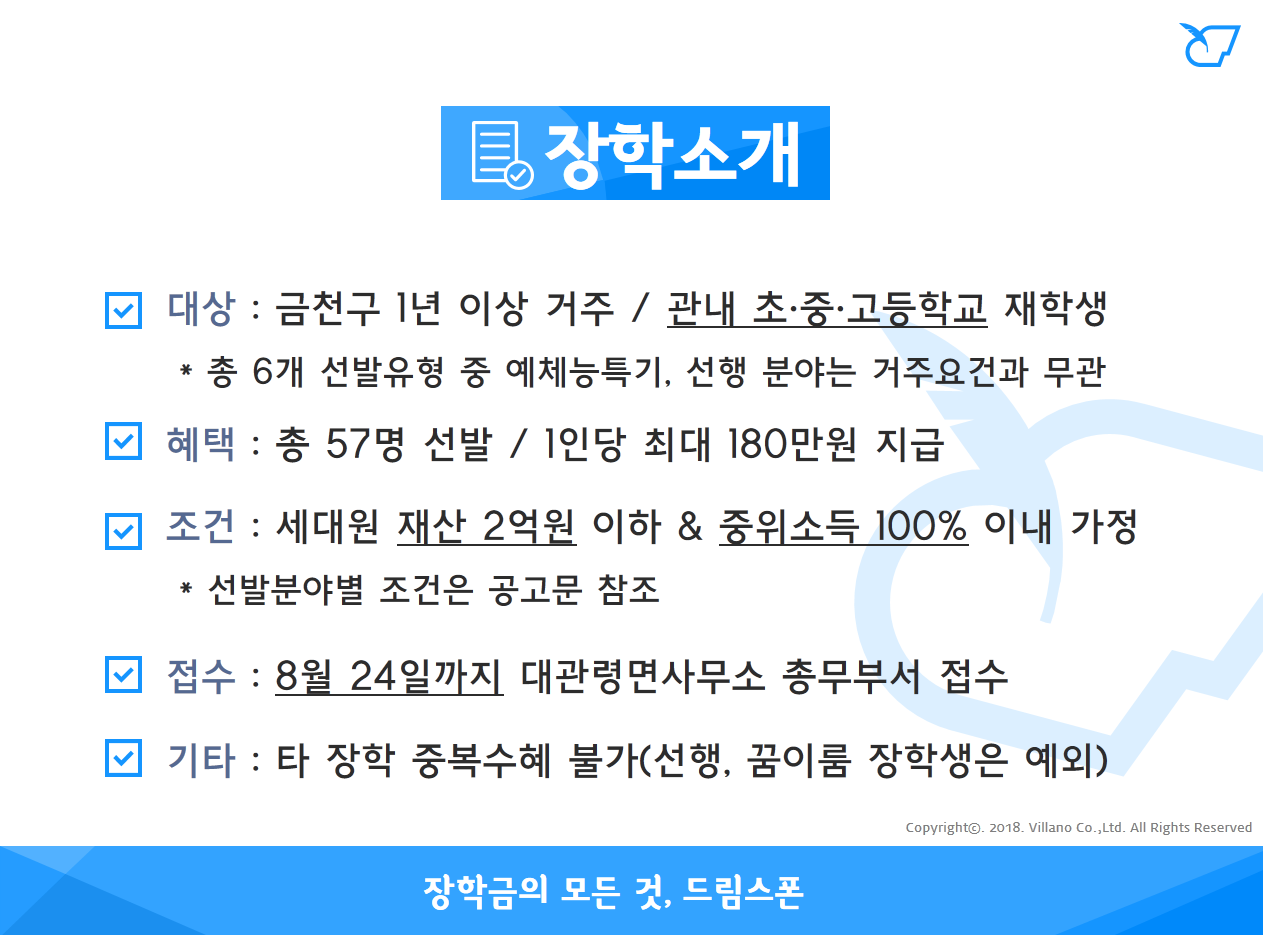 - 자기주도꿈이룸 : 중·고교생 20명 / 180만원