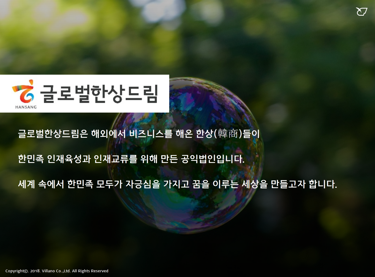 - 소개 : 사단법인 글로벌한상드림은 해외에서 비즈니스를 해온 한상(韓商)들이 글로벌 차세대 한민족 인재육성과 인재교류를 위해 만든 비영">