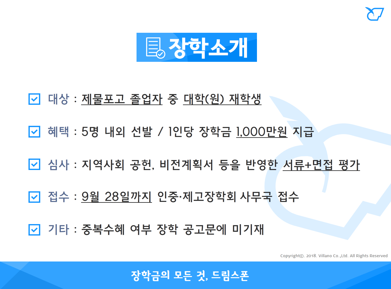 - 접수처 : 인천광역시 중구 신포로15번길 22-1, 2층(신포동) (재)인중∙제고 장학회 사무국