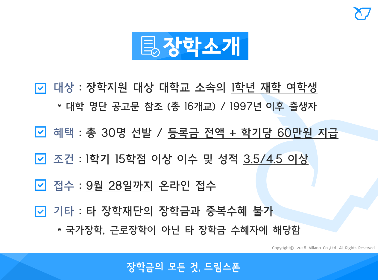 1) 2학년 ~ 졸업시까지 등록금 전액 지원 (학점 및 활동평가 후 계속지급 평가)