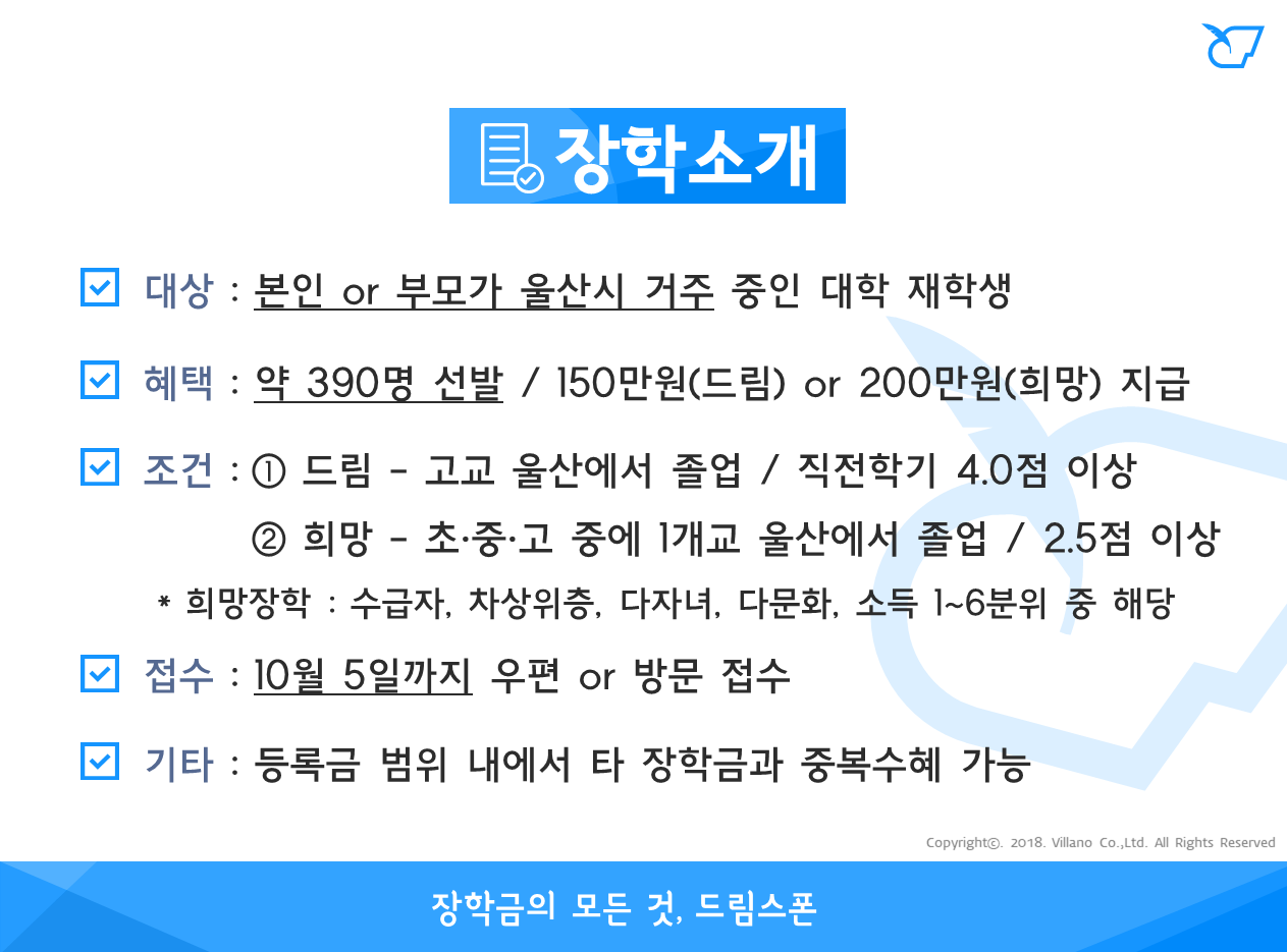 - 드림장학 : 90명 선발 / 1인당 최대 150만원