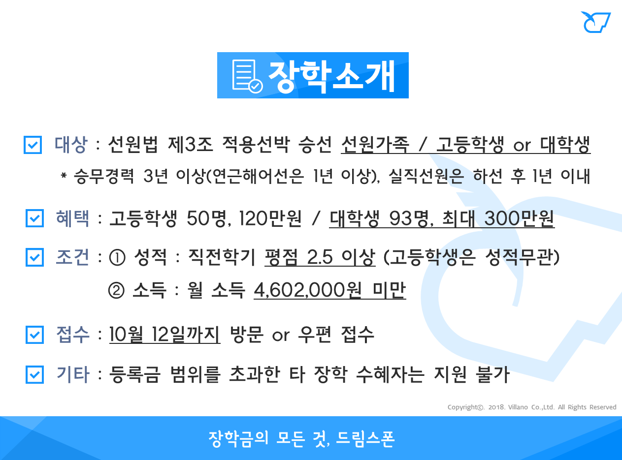 선원가족 장학(2018년 2학기)
