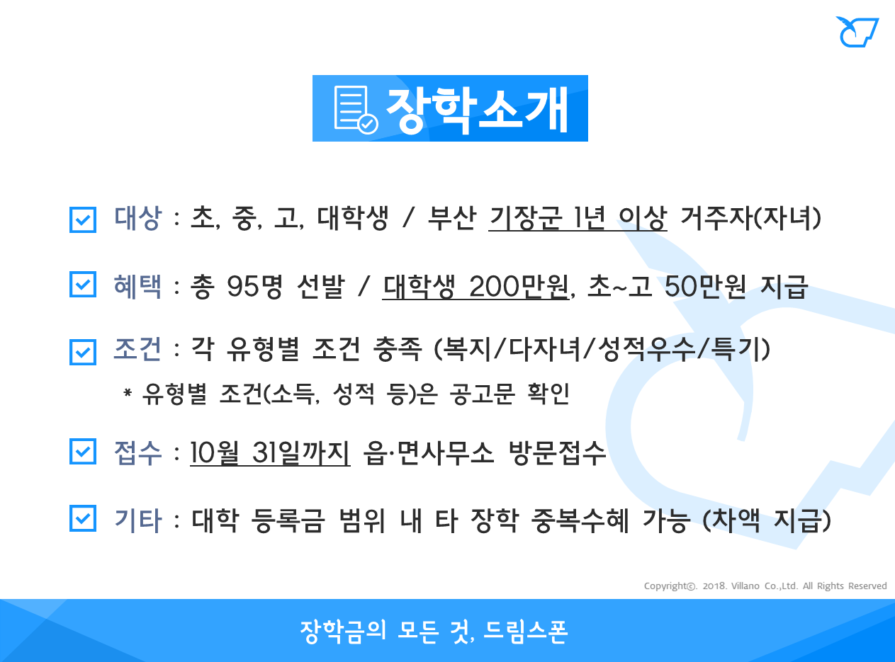 - 저소득자녀 : 20명 선발 (대10, 고10)