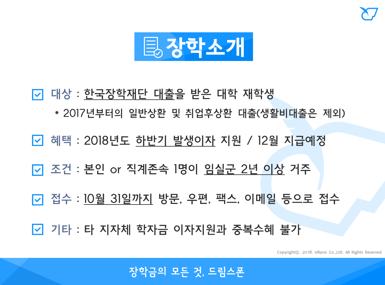 - 대출 신청기준일로부터 2년 이상 직계존속(부모, 친‧외 조부모) 1명 또는 학생 본인이 임실군에 주민등록이 되어 있는 사람