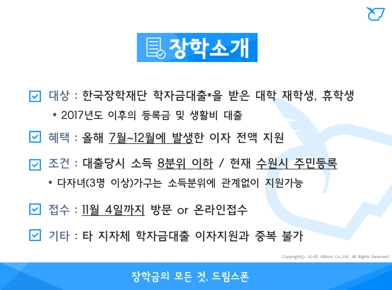- 지원방법 : 한국장학재단 대출금 상환(개인별 계좌입금이 아님), 12월 지급 예정