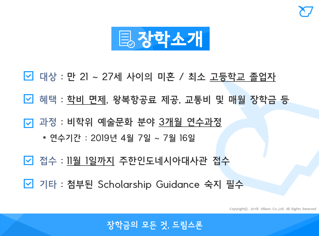 ▸ 장학금 지급(매월 Rp. 2.000.000)