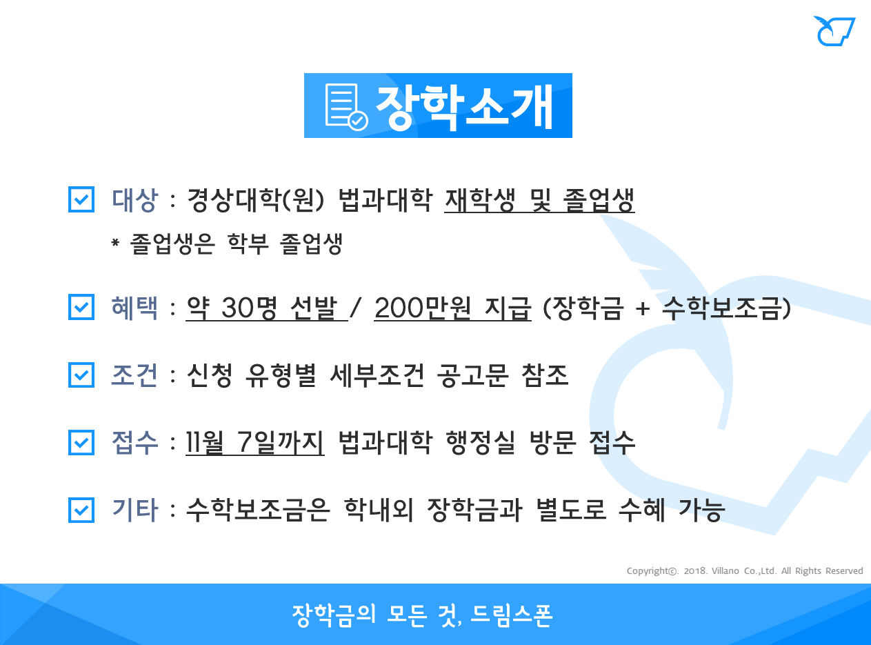 * 단, 특별장학금은 장학위원회 결정에 의함