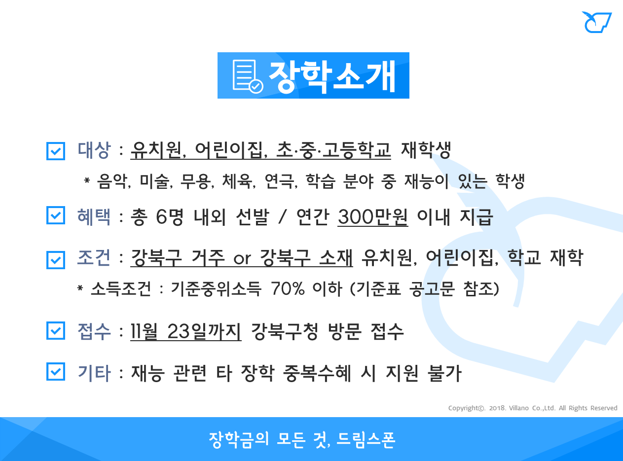 - 지원금액: 연간 300만원 이내(해당분야 재능계발에 필요한 비용 지원)