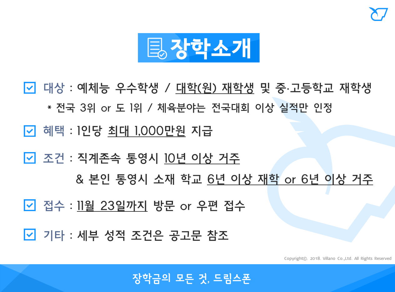 - 장학금액 : 1인당 1,000만원 이내