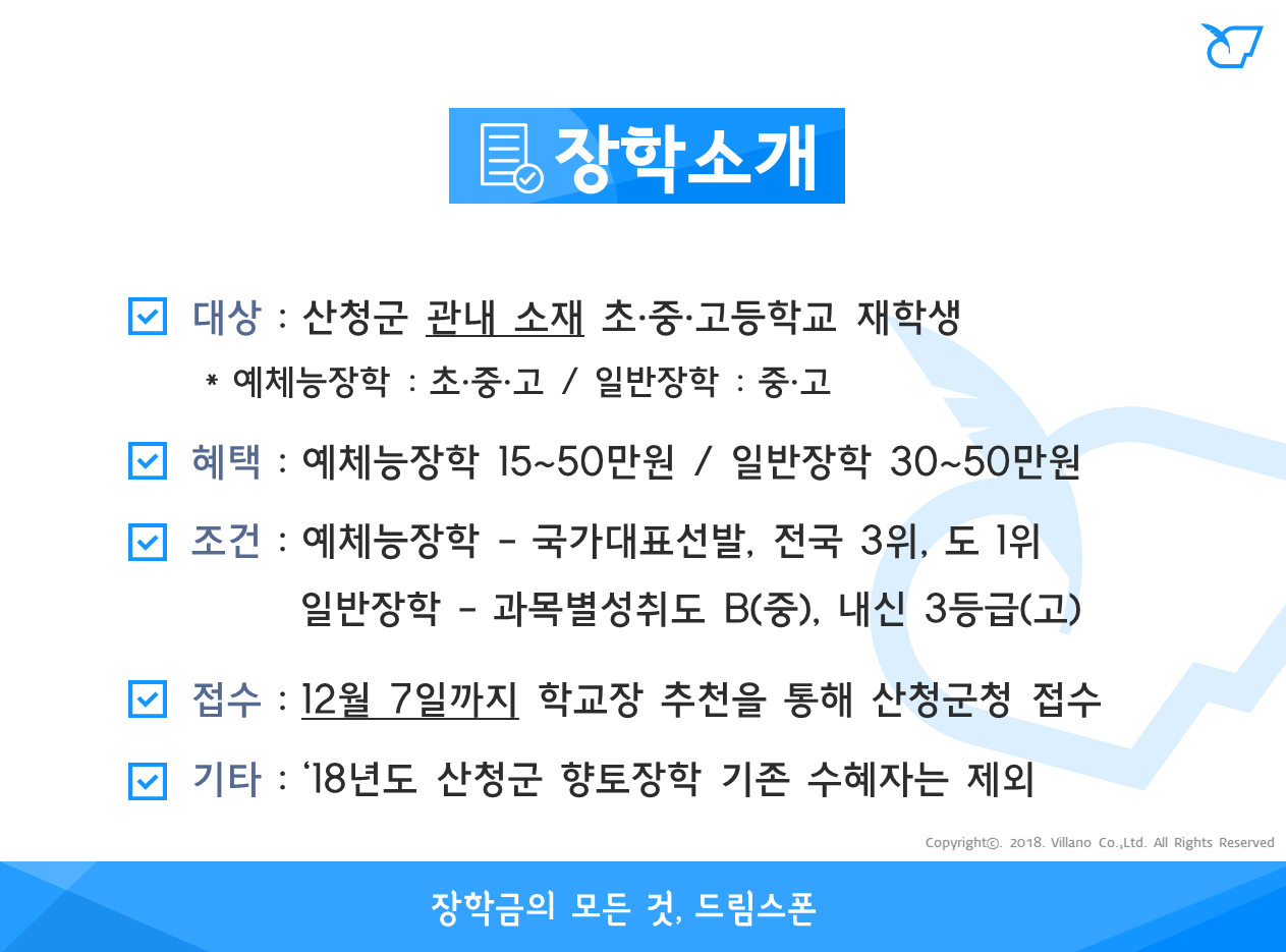 - 일반장학생 : 1인당 중 30만원 / 고 50만원 지급