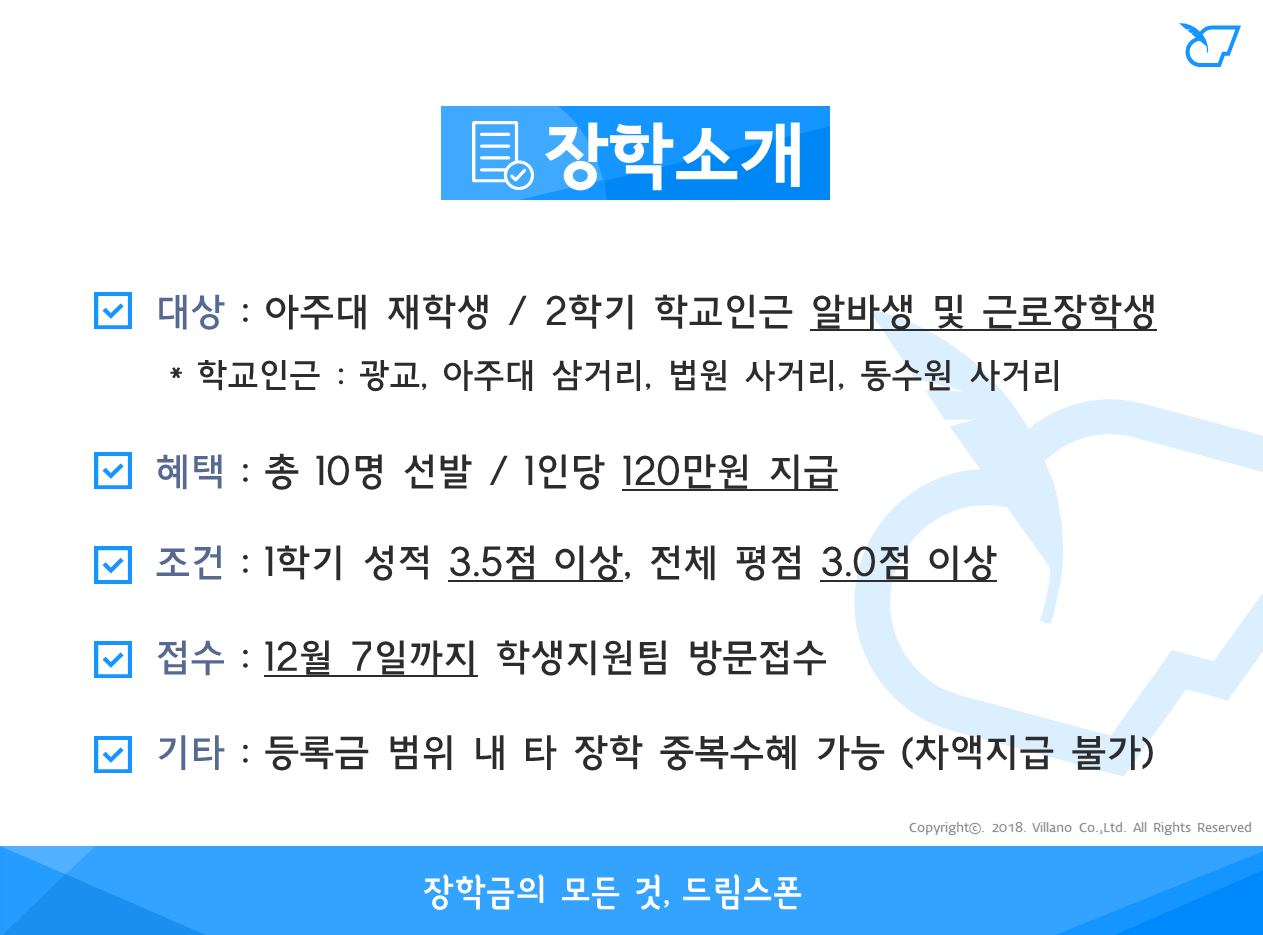 - 접수처 : 아주대 신학생회관 104호 학생지원팀