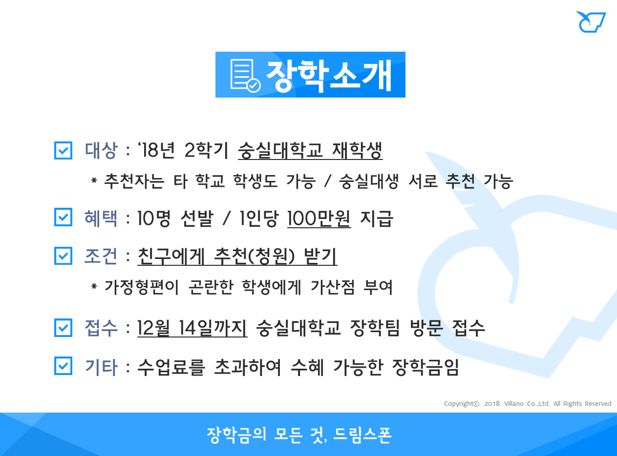 - 접수처 : 숭실대 학생회관 501-1호 장학팀