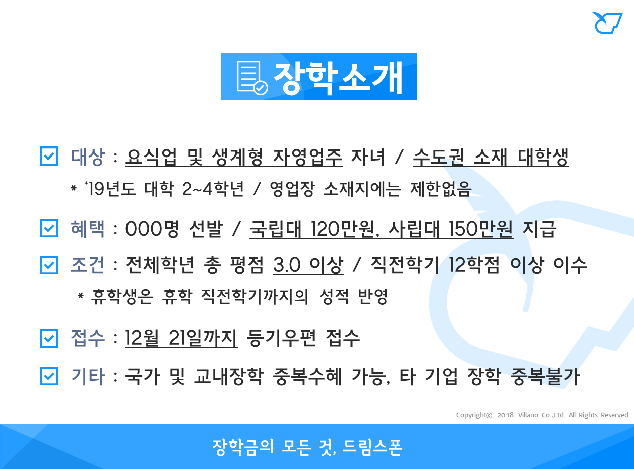 2019학년도 하이트진로 장학금