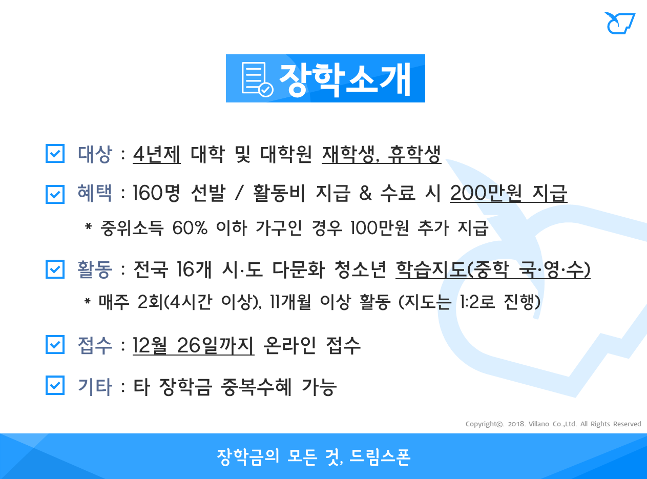- 장학금액 : 11개월 활동 수료 시 장학금 200만원 지원