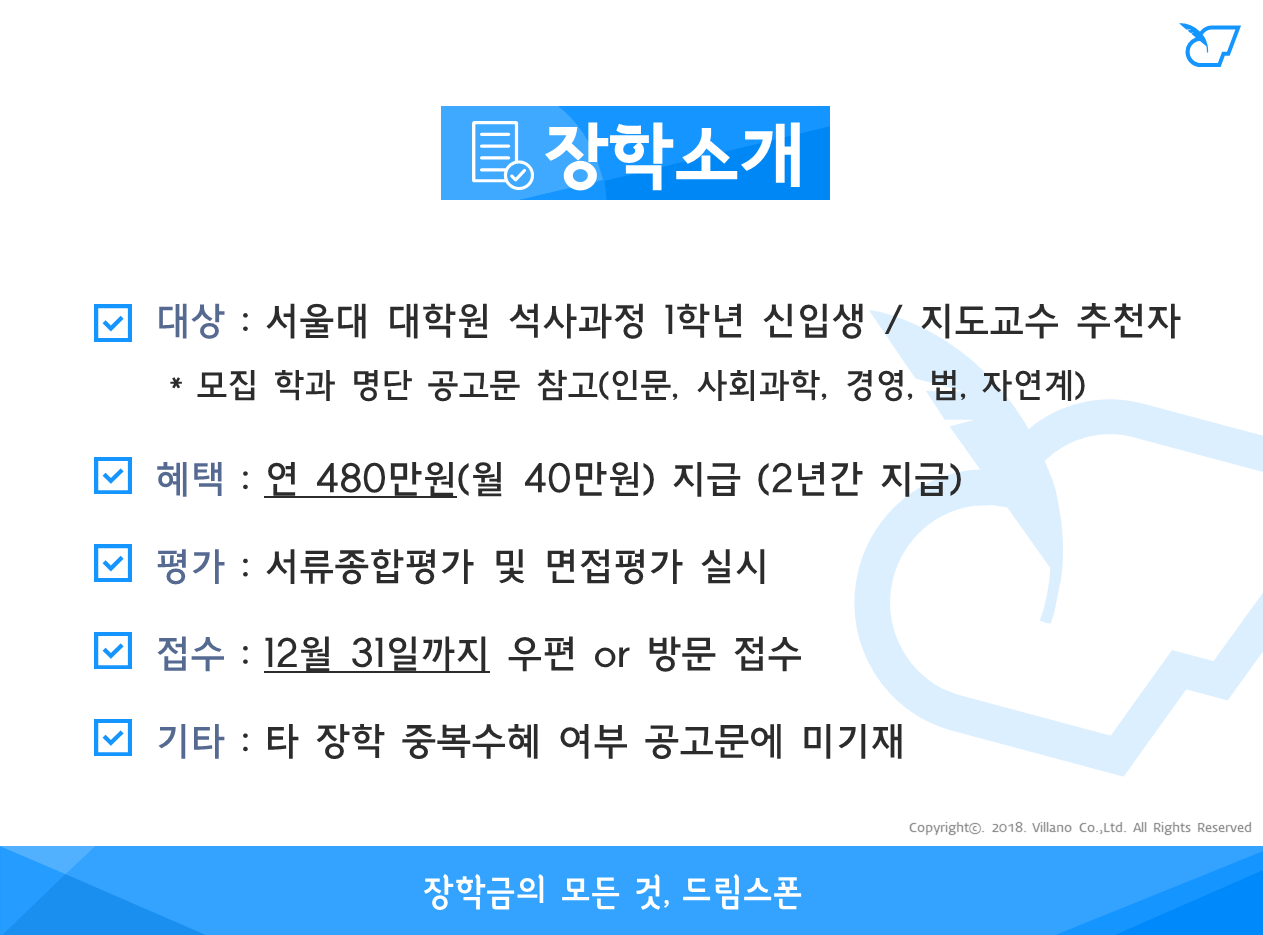 - 장학금액 : 연 480만원 (월400,000원)