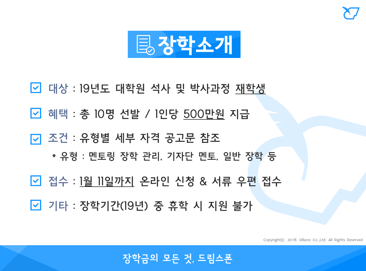- 장학금액 : 1인당 500만원 지급