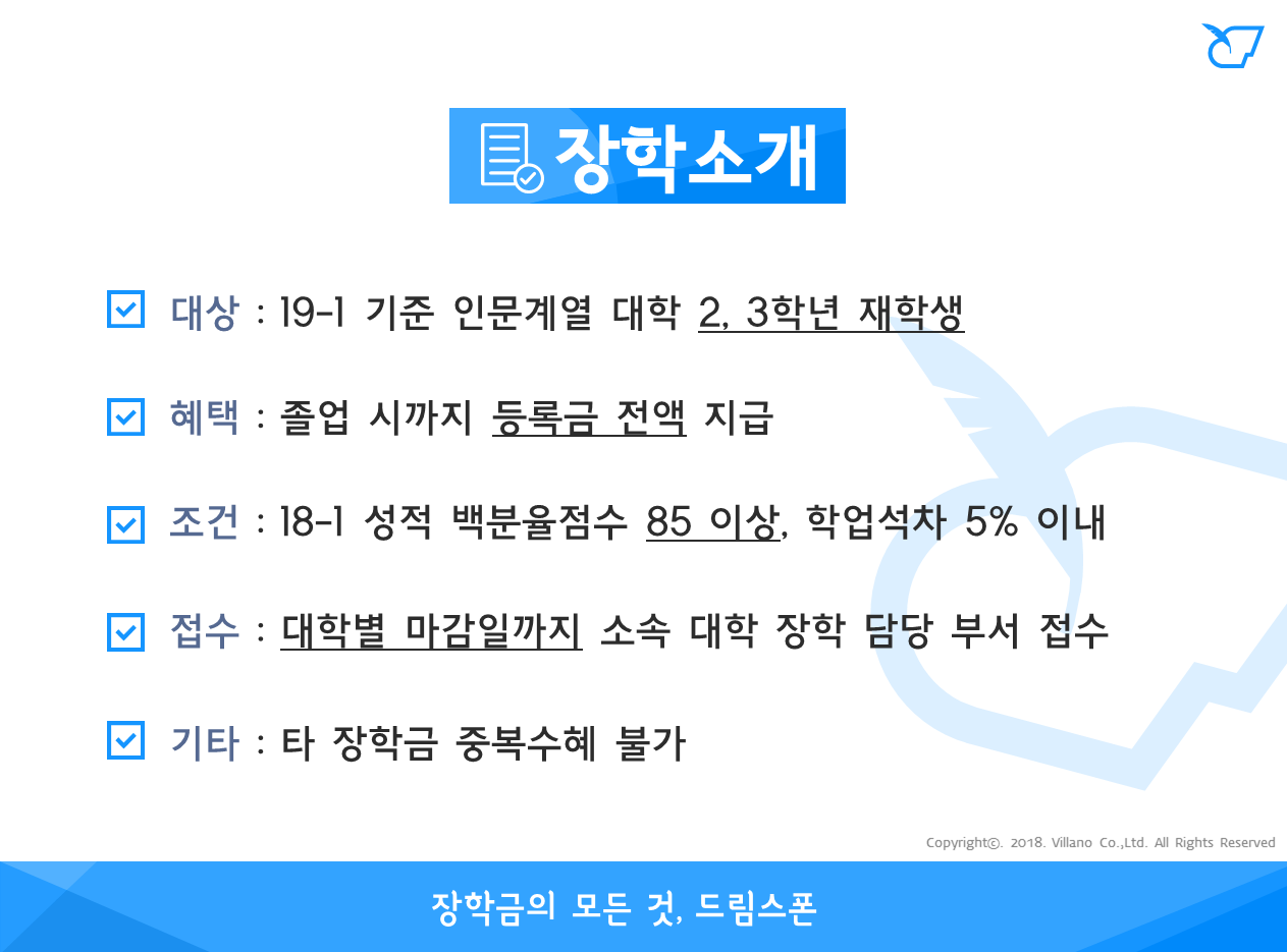 - 장학금액 : 등록금 전액(수업료+기성회비)