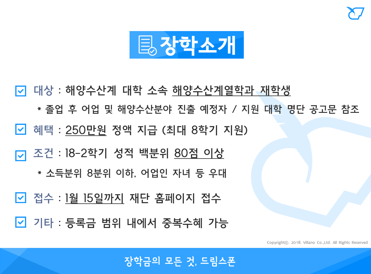 - 장학금액 : 한 학기 기준 1인당 250만원 (정액지급)
