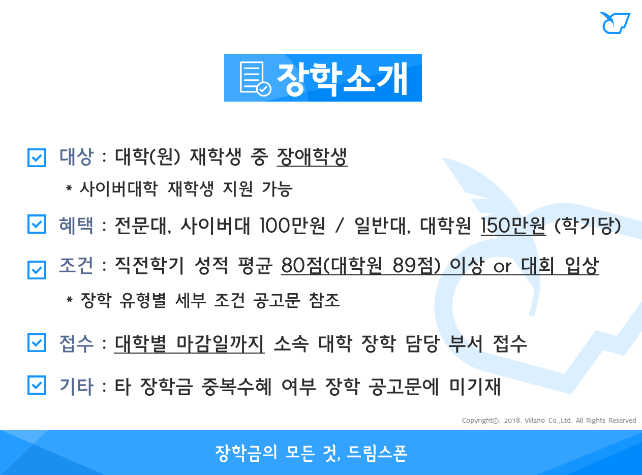 - 일반대학, 대학원 : 학기당 150만원 지급